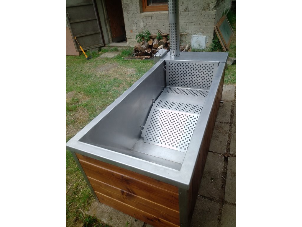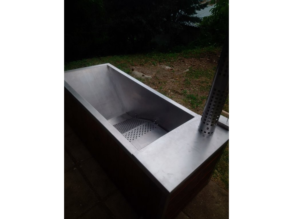 Nabízíme k prodeji koupací vanu s peletovými kamny. Vana byla vyrobena na zakázku pro připravovaný projekt, který nebyl nakonec realizován.