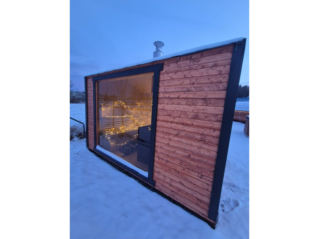 Užijte si pravý odpočinek s touto krásnou saunou s prémiovou výbavou 350 × 240 cm, která kombinuje styl, komfort a funkčnost. Tento wellness domeček je vybaven saunou s kamny na dřevo s přikládáním z venku, takže si můžete pohodlně regulovat teplotu a užívat si autentický zážitek.